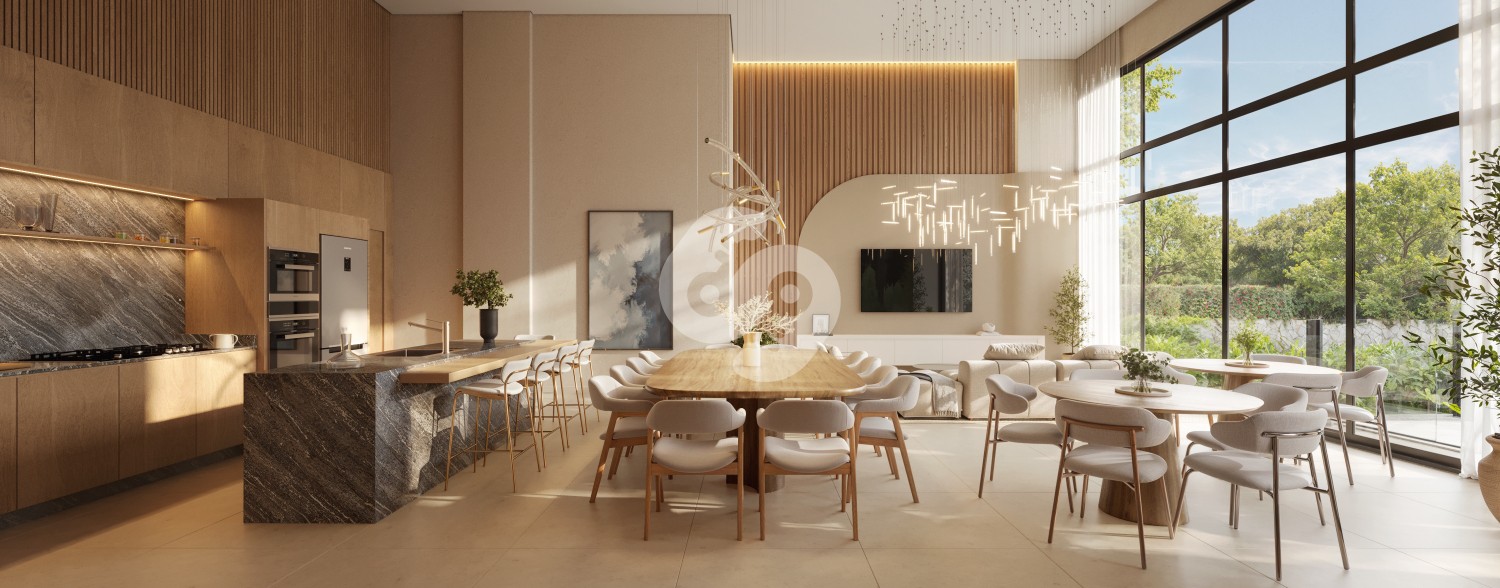 ◾ O padrão de construção é um dos grandes diferenciais: manta acústica em todo o piso, persianas motorizadas, vidros de alto desempenho, forro de gesso completo, além de esperas para lareira pellet, calefação e ar-condicionado. A churrasqueira com ponto de gás torna o ambiente perfeito para receber com conforto.