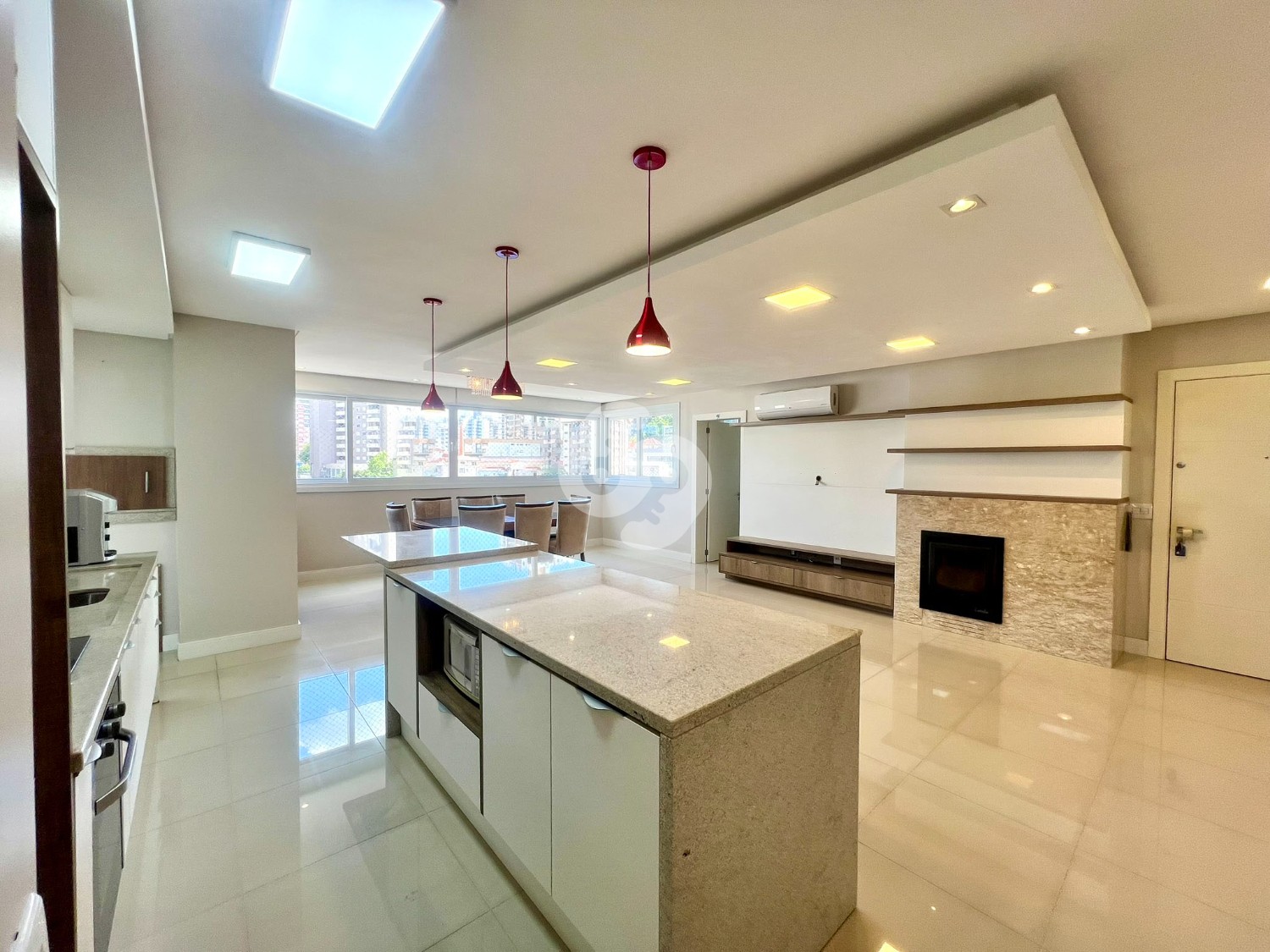✨ O acabamento de alto padrão é evidente em cada detalhe deste apartamento. As paredes revestidas com massa corrida e os tetos rebaixados em gesso conferem um toque de sofisticação. As esquadrias externas termo acústicas em PVC garantem conforto acústico e térmico, enquanto os Splits na suíte, dormitório e sala proporcionam o clima ideal em todas as estações.